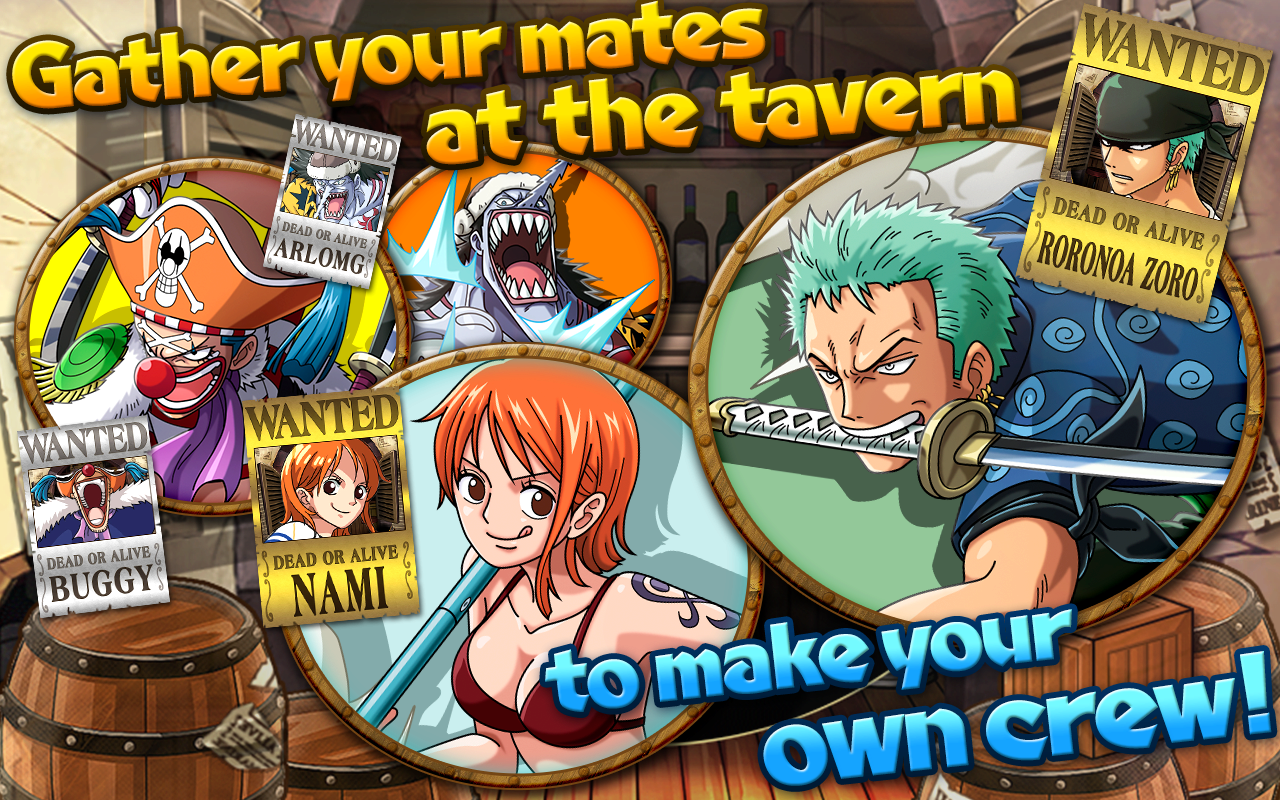 Forma o seu próprio grupo de piratas e partiu para a aventura! Use os controles simples toque para tirar combos poderosos! O mundo de One Piece espera por você! -Uma All-New Batalha sistema feito apenas para o seu Smartphone! - One Piece características TREASURE controles de cruzeiro toque intuitivos que vai ter que enviar inimigos voando em nenhum momento! Toque seus personagens no momento certo para formar combos e causar dano enorme! Além do mais, cada personagem possui habilidades especiais únicas que tornam as batalhas ainda mais emocionante! Reencenar confrontos emocionantes da história original usando seus personagens favoritos One Piece!